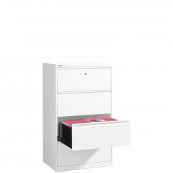 A függőmappa szekrények lelke a jól működő és stabil fiókok. Ha a fiókok szorulnak, gyengék, teher alatt meghajlanak, nehezen záródnak, vagy nehezen nyílnak, akkor oda a hatékony és élvezetes munkavégzés. A FILE fiókok teljes terhelés mellett is halkan és könnyen nyithatóak, zárhatóak. Minden mappa könnyen hozzáférhető vagy visszahelyezhető, mert a fiókok 100%-ig kihúzhatóak. A szekrény minden fiókja egyetlen központi zárral nyitható / zárható. Alapárban jár Önnek a borulás elleni védelem, azaz egyszerre csak egy fiók húzható ki, így elkerülhetőek a kellemetlen meglepetések. Válasszon Ön is a FILE szekrények közül és tegye munkáját szó szerint gördülékennyé!